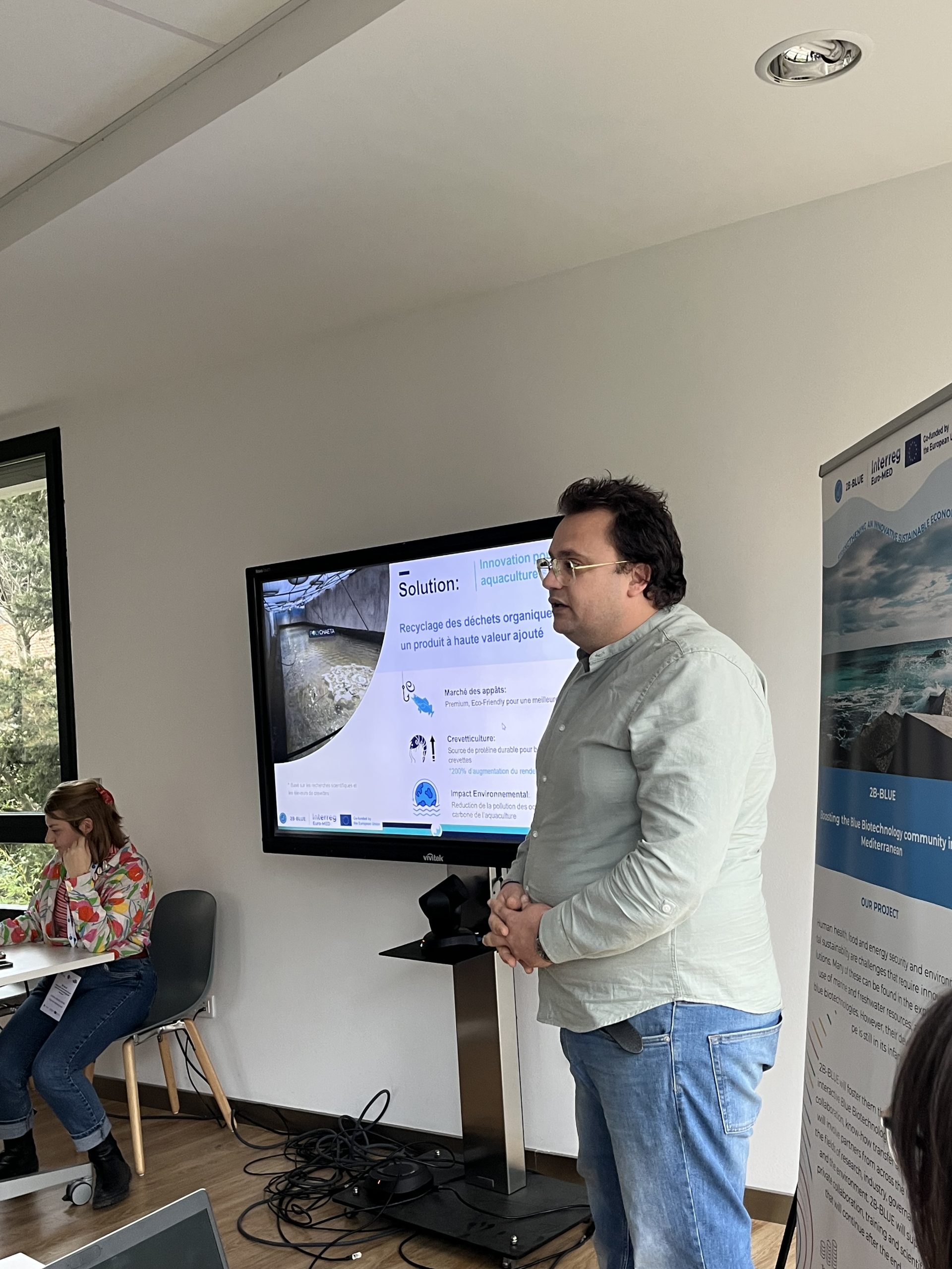 - Marwen Mokdad, de Polychaeta, a présenté sa technologie d’Aquaculture Multi-Trophique Intégrée (IMTA) pour produire des vers de sable grâce à l’élevage de crevettes.