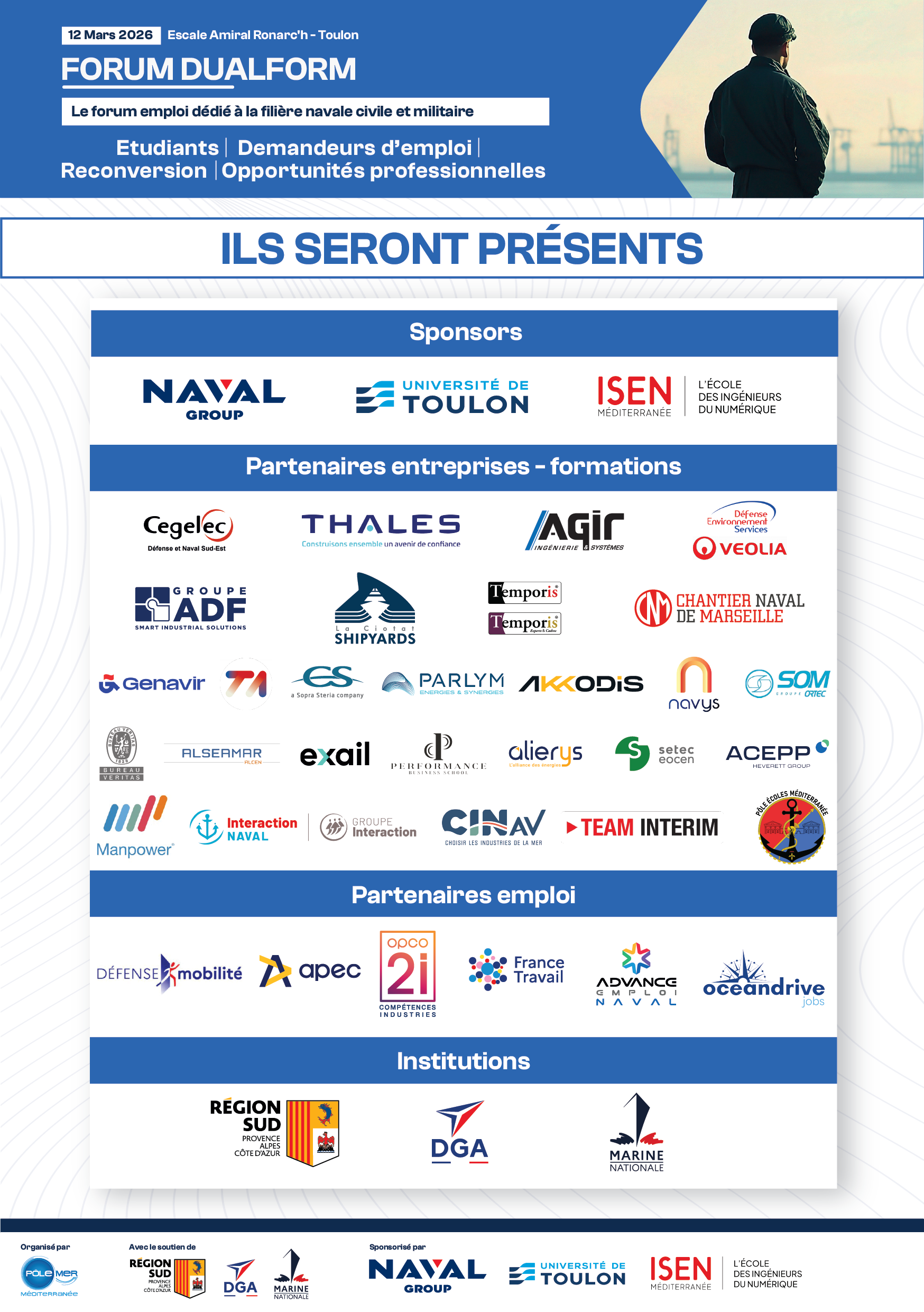 - Professionnel en reconversion, en recherche d’emploi ou à la recherche d’opportunités professionnelles dans la filière navale